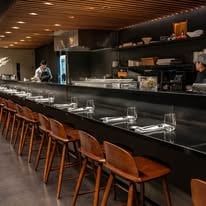 Even the space itself is an experience. The sushi bar, crafted from a single slab of African Bubinga wood, stretches almost the entire length of the dining room. It’s a front-row seat to watch Chef Lee and his team transform gleaming cuts of tuna, salmon, and scallops into works of edible art.