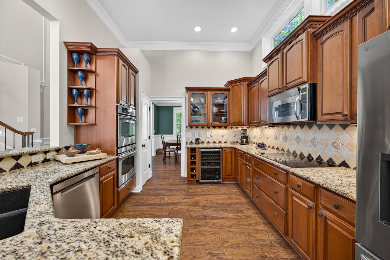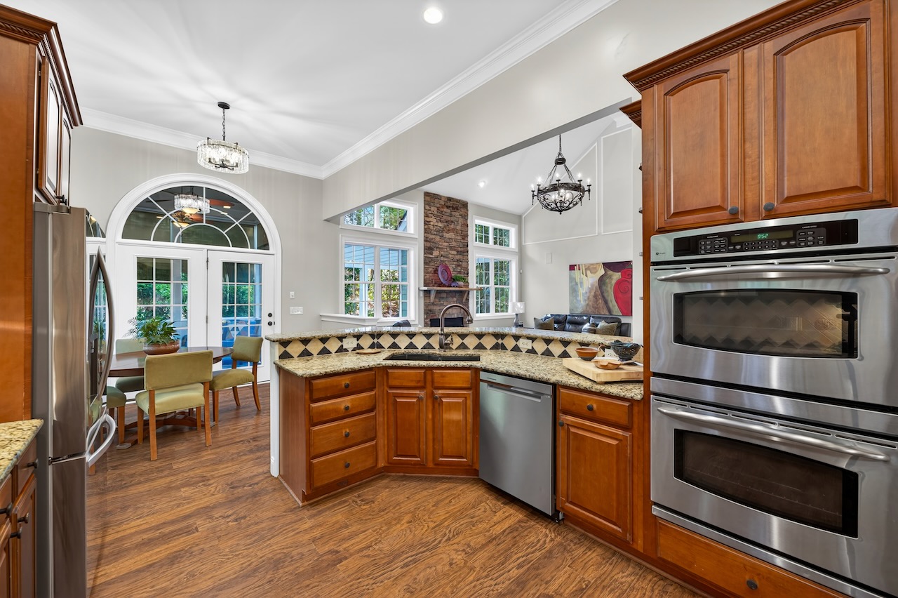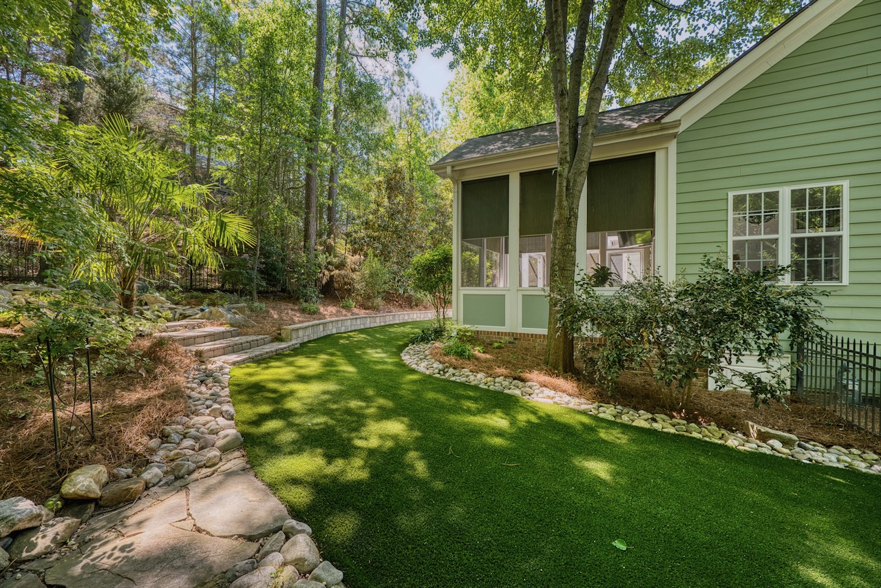 From the moment you arrive, the inviting front porch framed by mature Japanese maples sets the tone. A fully enclosed front and back yard, complete with a charming garden gate, creates a private, secure setting that is difficult to find in many Wake Forest homes. Seasonal flowering trees and plantings provide color from late winter through fall, while low-voltage landscape lighting enhances the property after dark.