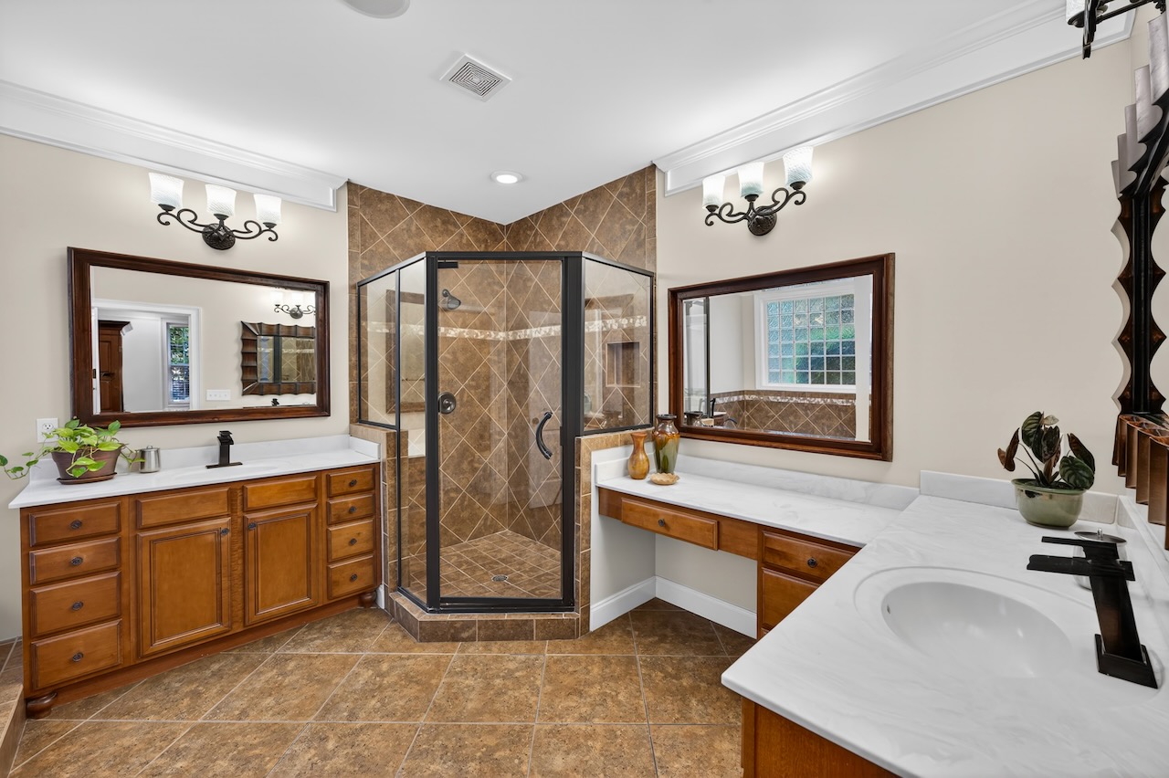 Inside, the open-concept floor plan with new flooring throughout provides a comfortable flow ideal for everyday living and entertaining. The first-floor primary suite offers convenience and privacy, complete with an en suite bath and peaceful garden views. Upstairs, generously sized bedrooms are supported by two full bathrooms, both with double sinks, including a Jack-and-Jill layout.